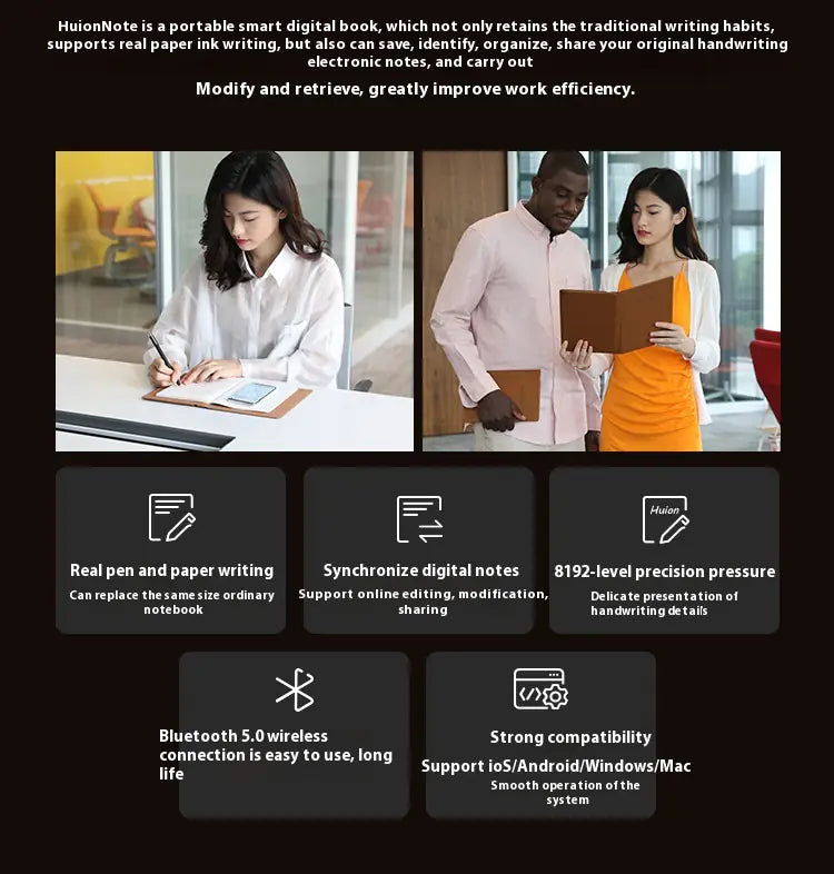 Experience next-level note-taking with the Huion Note X10 Smart Digital Notepad. Featuring passive electromagnetic pen technology, 8192 pressure levels, and high handwriting resolution, this digital notebook is perfect for business meetings and creative work. Includes a full accessory kit for seamless productivity.